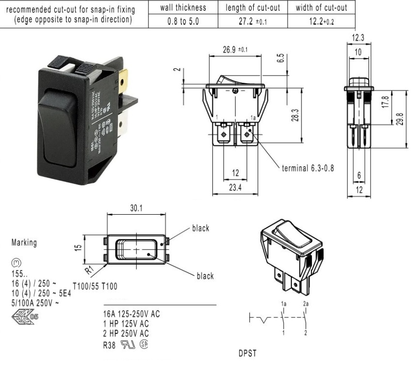 R15-15A-250V (ON)-OFF-(ON) BLACK
